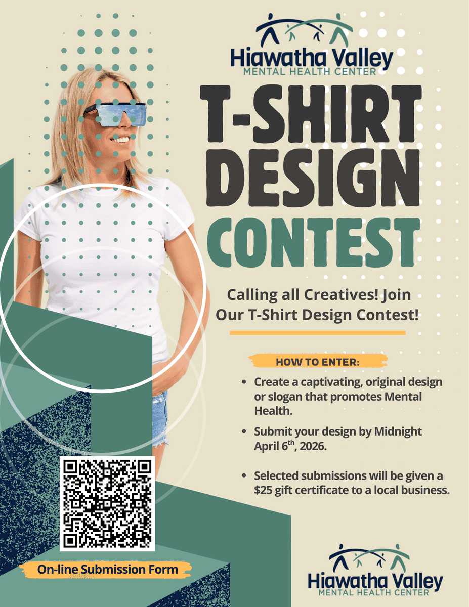 Winona, Minn. – Hiawatha Valley Mental Health Center (HVMHC) is excited to announce the launch of a new Community Partnership Program and Mental Health Awareness Apparel Design Contest. This initiative is designed to engage local businesses, staff, clients, and community members in promoting mental wellness and reducing the stigma surrounding mental health.